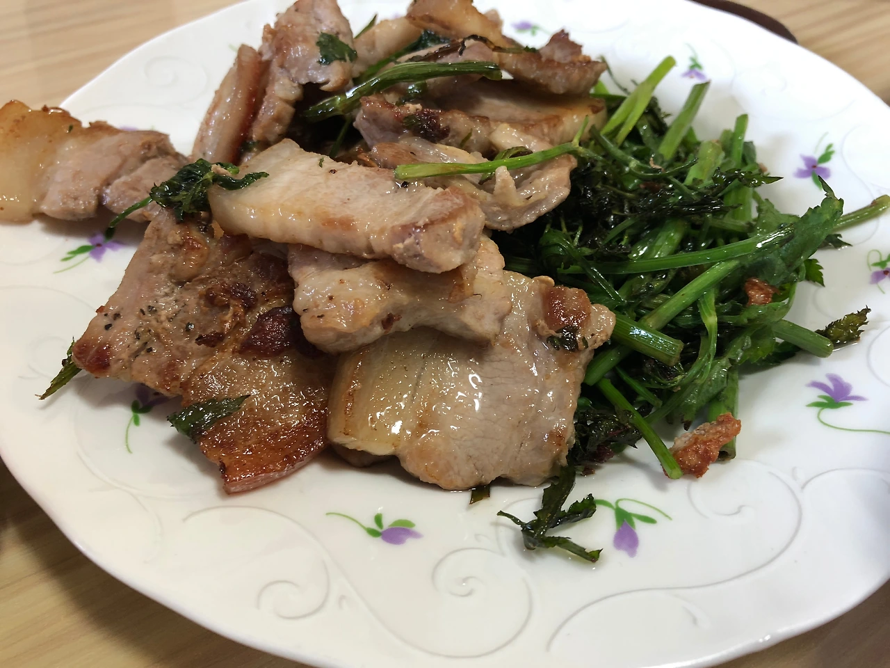 논에서 수확한 미나리로 만든 미나리삼겹살 :)