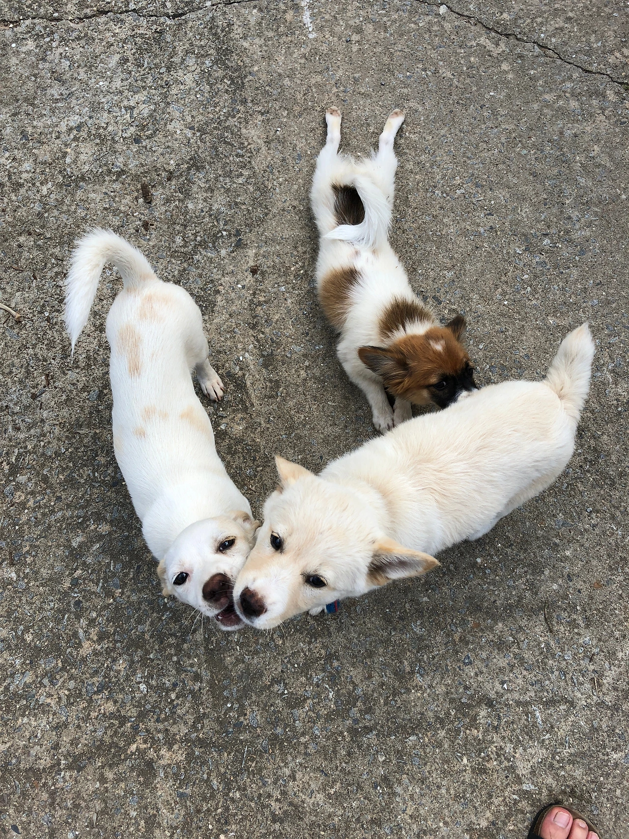 그런데 요상하게도 저를 잘 따르는 녀석들이 신기한지, 마을분들은 저보고 키우라고 이야기를 하십니다. 앞 집 어머니도 키우라고 말씀해주셨는데, 집을 비울 때 두 녀석만 남겨 놓는게 걱정이 되어 흔쾌히 입양 하지 못하겠더라구요.