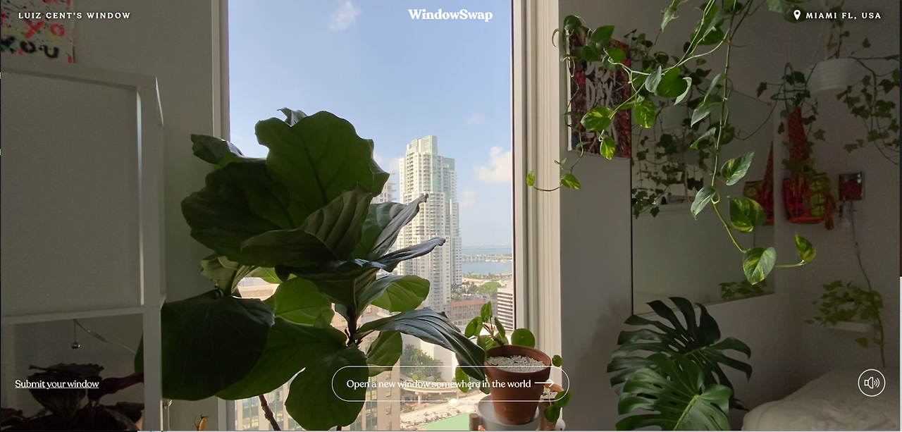 창문 밖 풍경을 보는 것도 이 집에서 사계절을 겪고 나니 일상처럼 느껴지던 차에, 오늘 전 세계 곳곳의 집안에서 보는 창 밖 풍경을 영상으로 공유하는 플랫폼을 알게 됐다. 집 안에서 창밖을 보며 여행을 꿈꾸는 이들은 서로의 창문 밖 풍경을 공유하기 시작했다. 사이트 이름은 ‘Window Swap', 일명 '창문 바꿔보기'이다. 사이트에 들어가니 가운데 한 가지 문구가 뜬다. '열려라 참깨‘처럼, 마치 다른 세계로 인도하는 어떤 주문처럼 보인다.