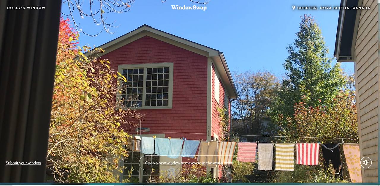 다른 나라의 집 밖 풍경이 뜬다. 화면 상단에 조그마한 글씨로 어느 나라, 어느 도시인지만 간단하게 적혀 있다. 그들이 사는 창밖을 보는 건 낯설고 흥미로웠다. 처음 만나는 집은 캐나다 어느 가정집의 뒷마당처럼 보인다. 파랗게 개인 높은 하늘에 맞은편 붉은 집이 보이고, 가을 낙엽이 빛을 받아 반사된다. 빨래 자락은 바람에 몸을 맡기며 살랑인다. 두 눈이 평화로워지는 풍경에 잠시 머물렀다. 이미 가본 도시의 창문을 만나는 일은 더 반갑게 느껴진다.