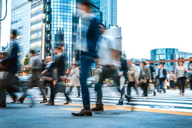 사람들이 서둘러 거리를 가득 채운다.