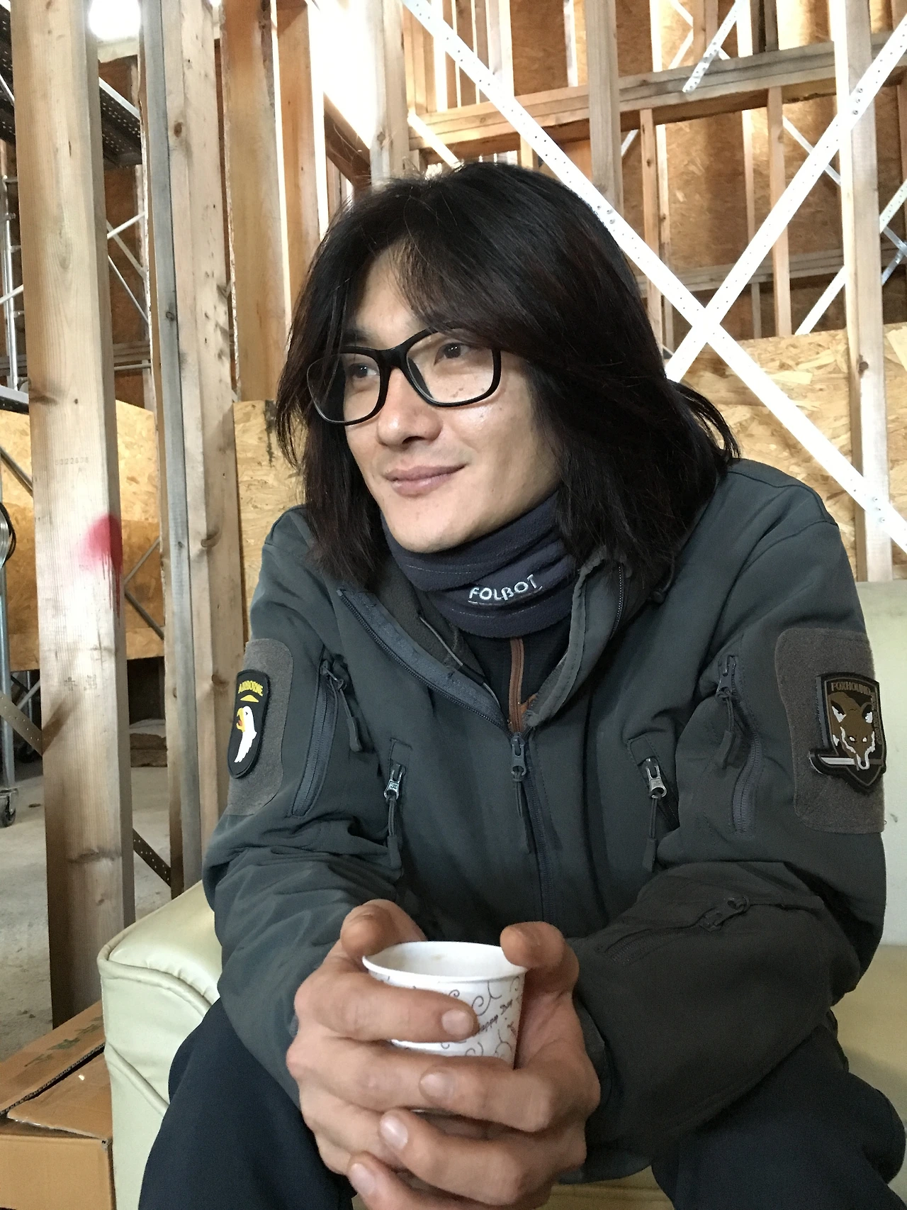 작업 현장에 도착하자 예상과 다른 외관에 눈이 휘둥그레졌다. 분명 집을 짓고 있다고 했는데, 그건 집이 아니었다. 놀란 마음을 가라앉히고 안내에 따라 내부로 들어서자 건물의 몸통이 된 목재들이 남긴 톱밥 먼지가 자욱했다. 앉을자리를 마련해주고는 따뜻한 믹스커피 한 잔을 건네 오는 작가의 모습에서 정감이 느껴졌다. 그렇게 완성되지 않은 공간에서 먼지 섞인 싸늘한 실내의 공기를 커피 한 잔으로 달래며 대화는 시작됐다.