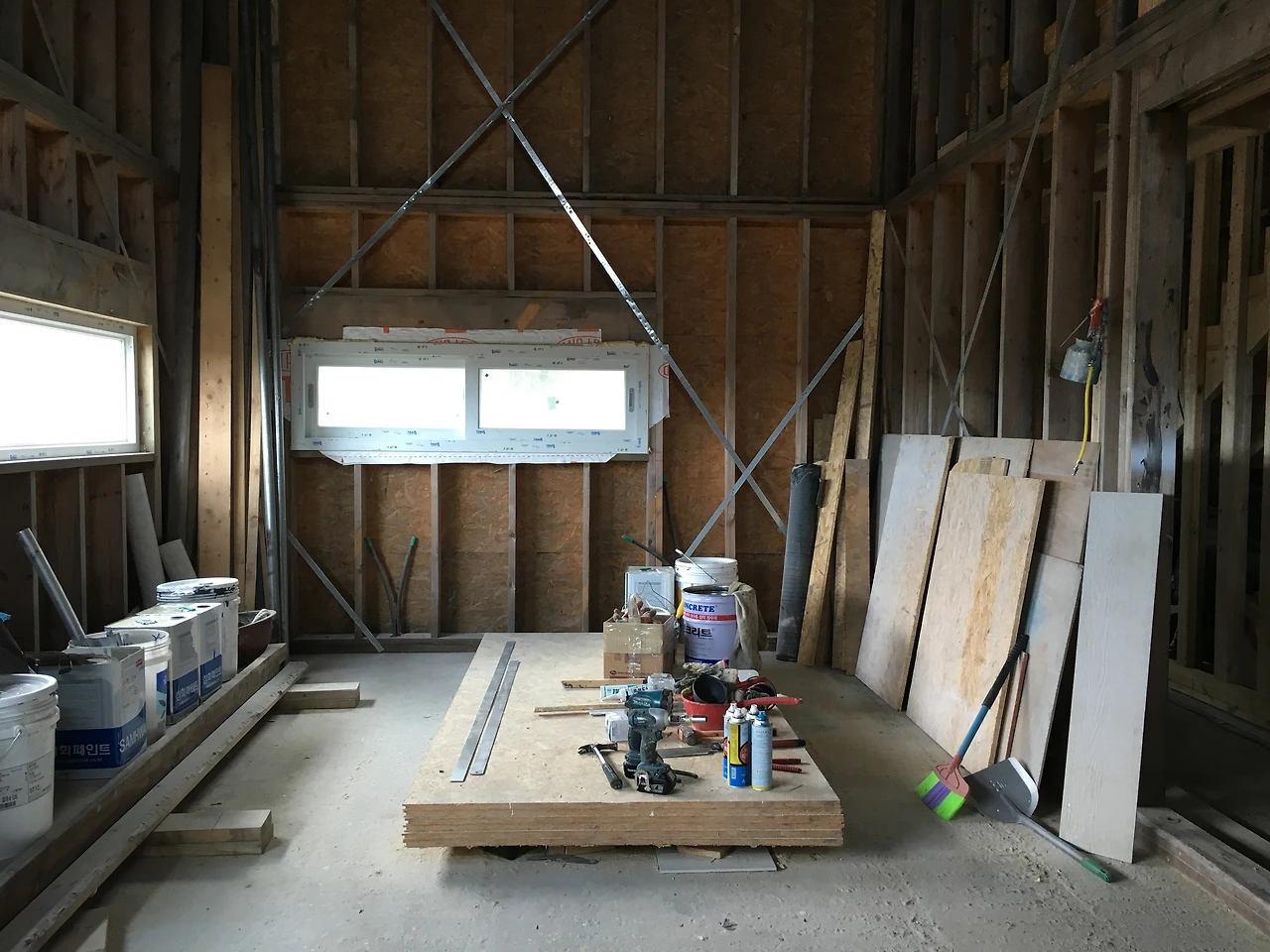 홍성에서 8개월에 거쳐서 폐가를 사람이 살 수 있는 집으로 고쳐놓았던 게 신의 한 수였어요. 그 집이 가치가 조금 올라서 거길 판돈으로 제주로 내려올 수 있게 된 거죠. 그런데 막상 내려와서 집을 짓다 보니 그 돈으로는 턱도 없는 게 현실이었어요. 그래서 사실상 지금 집은 빚으로 짓고 있는 거나 다름이 없어요. 나중에 완공이 되면 빨리 벌어서 차차 갚아나가야겠죠.