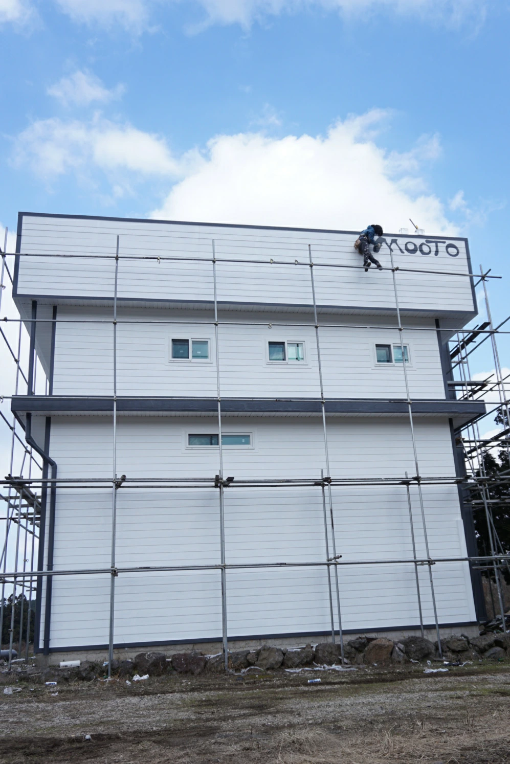 자제를 나르는 것, 누가 잡아줄 사람이 없는 것이 가장 힘들어요. 목조건축으로 짓고 있어서 나무 자재가 많이 드는데, 이 집에 들어가는 것들은 보통 성인 남자 혼자서는 다 들 수 있는 무게이기는 해요. 나무 하나의 길이가 6미터쯤 되고, 무게는 약 20킬로 정도예요. 혼자서 드는 건 무리가 없지만, 건물이 3층이다 보니 자제를 들고 오르내리는 게 가장 힘들었던 것 같아요. 아마 2년 넘게 이러고 있으니까 백만 번도 넘게 오르락내리락했을 거예요. 한 번은 위에서 떨어져서 살짝 다치기도 했었죠. 하지만 지금은 괜찮아요. 어느 정도 요령이 생겼거든요. 그리고 또 하나 가장 어려운 것 중의 하나는 바로 제주의 날씨예요. 바람이 너무 심하거나 비가 오거나 그러면 어쩔 수 없이 작업을 중단해야만 하거든요. 작업 기간이 길어진 것에 가장 큰 몫을 한 게 제주의 날씨인 셈이죠. 하지만 어쩔 수 없어요. 이 변화무쌍한 날씨에 적응하는 수밖에. 이게 바로 제주니까요.