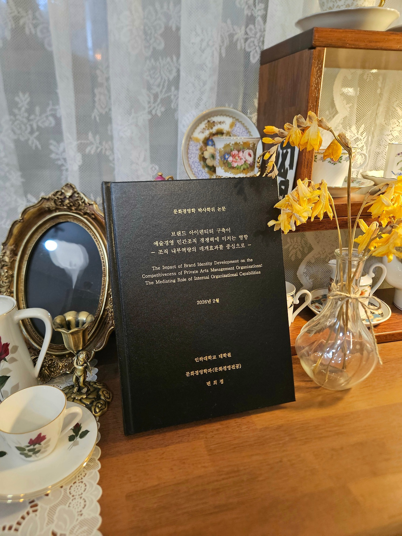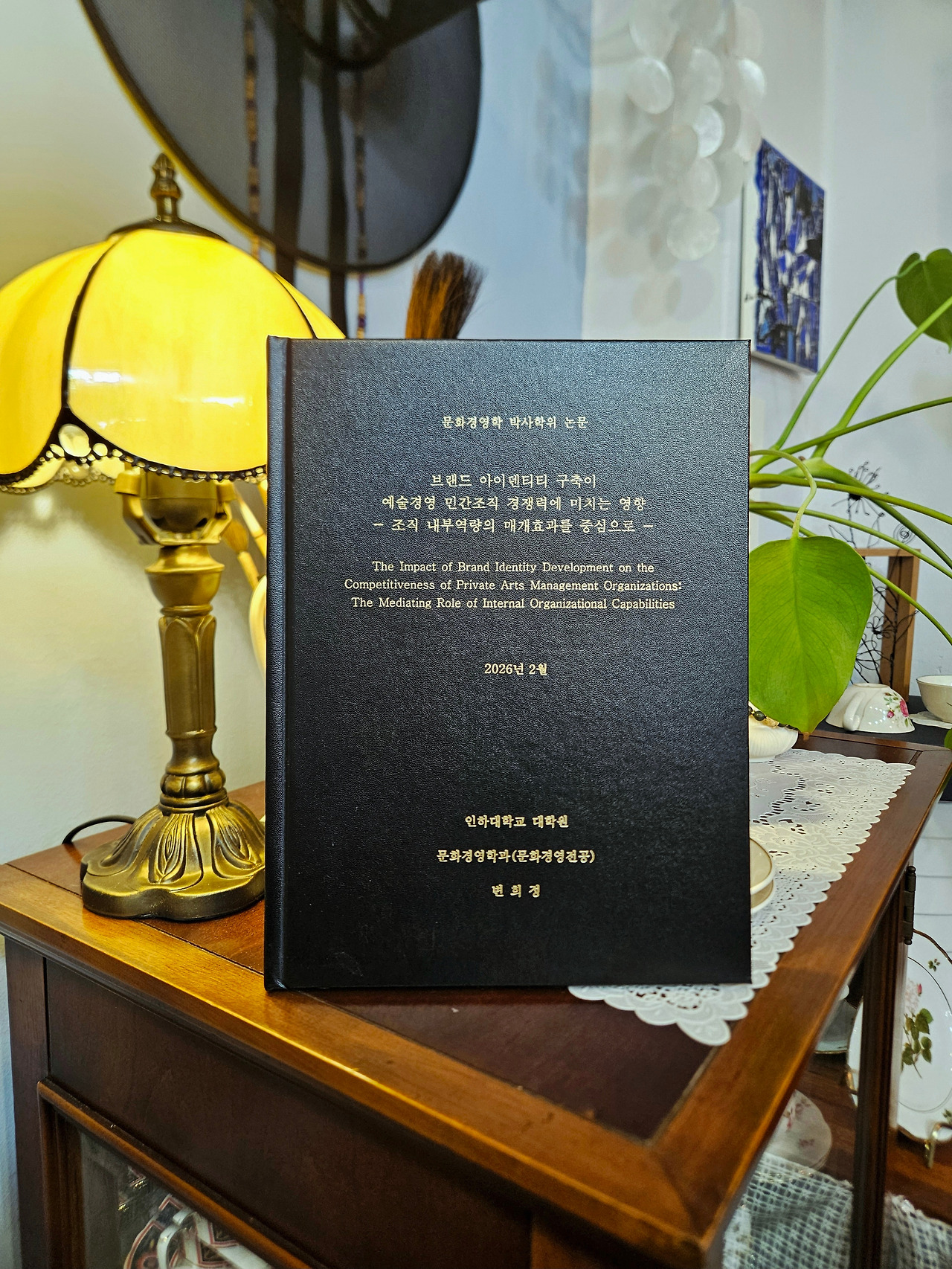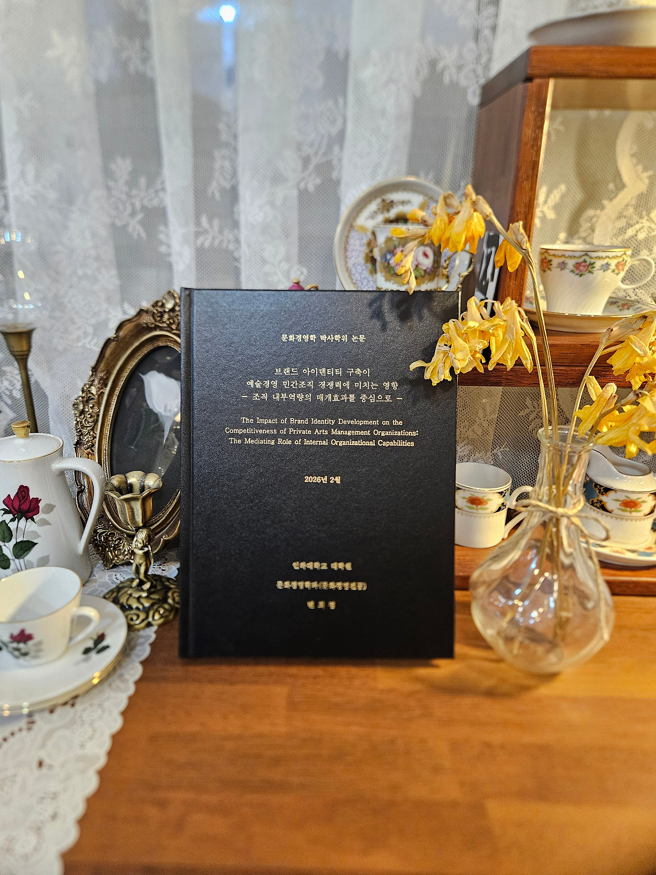 제 논문 제목은 「브랜드 아이덴티티 구축이 예술경영 민간조직 경쟁력에 미치는 영향 - 조직 내부역량의 매개효과를 중심으로 -」입니다. 다수의 조직 대표자 및 실무자에게 설문 응답을 받아 진행된 양적연구였지만, 14년이란 시간 동안 예술경영 민간조직을 직접 운영해 왔기에, 이 논문의 연구 문제와 방향은 결국 제 자신과 제 조직을 향해 있었습니다. 논문을 진행하고 마무리하는 과정에서 그 의미를 더 철저히 깨닫게 되었습니다.
