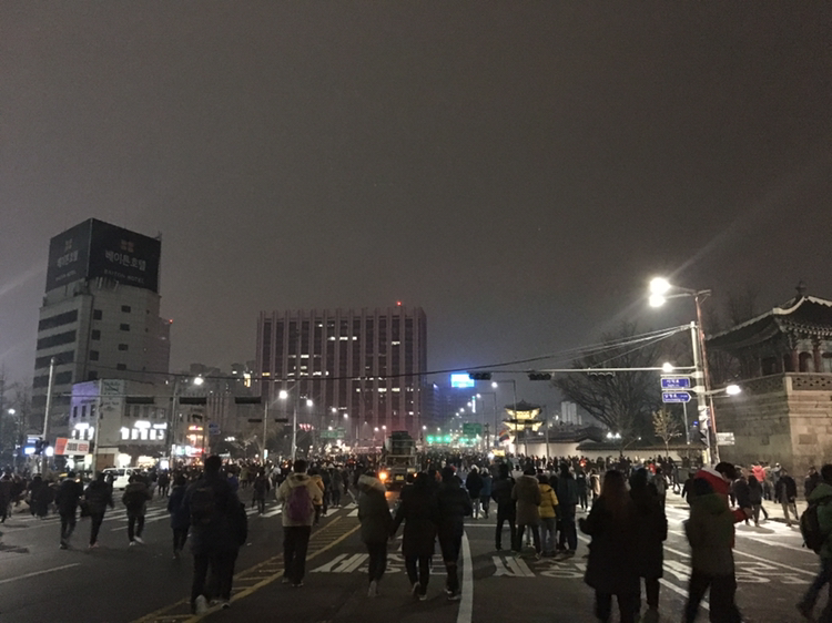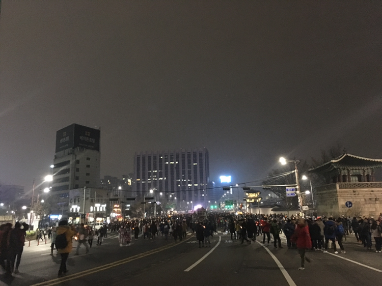 저녁을 먹으면서 전국에서 이백만에 가까운 시민들이 광장으로 나왔다는 뉴스를 접한 팀원 중 한명이 조심스레 우리도 참여를 하면 안되겠냐는 제안을 해왔다. 안그래도 워크숍때문에 집회에 참여하지 못해 마음이 좋질 않았는데, 먼저 제안해준 것이 너무 고마워서 바로 일정을 변경하였다.