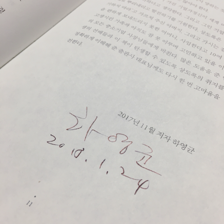 그리고 기분이 좋았던 한 가지는, 명함을 내밀며 사인을 요청드리자 수많은 페친 중에 하나였을 나를 기억하고 알아봐주셨다는 사실이다. 첫 만남이었기에 먼저 내게 “앞으로 자주 봬요.”라고 말씀을 해주신 것이 감사했다.