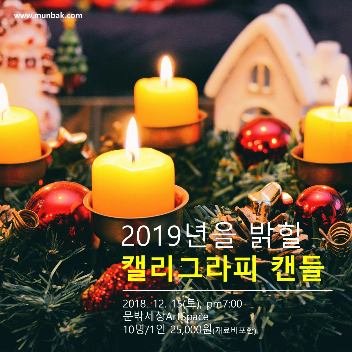 '캘리그라피 캔들만들기'는 어쩌면 아주 익숙한 클래스라 생각할지도 모르겠어요. 하지만 기존 클래스들과 같다면 '크리스마스 예술상점'에 입점하기 힘들지 않았을까요? 자신이 직접 쓴 캘리그라피를 양초에 입히는 작업은 기존의 흔한 클래스와 비슷한 점이지만, 여기선 올해 힘들었던 기억을 모두 태워버리는 작업도 할 거랍니다. 단순 쓰기와 공작에만 집중하지 않고. 분명 여러분들의 마음을 어루만져주는 시간이 될 거라고 확신합니다.