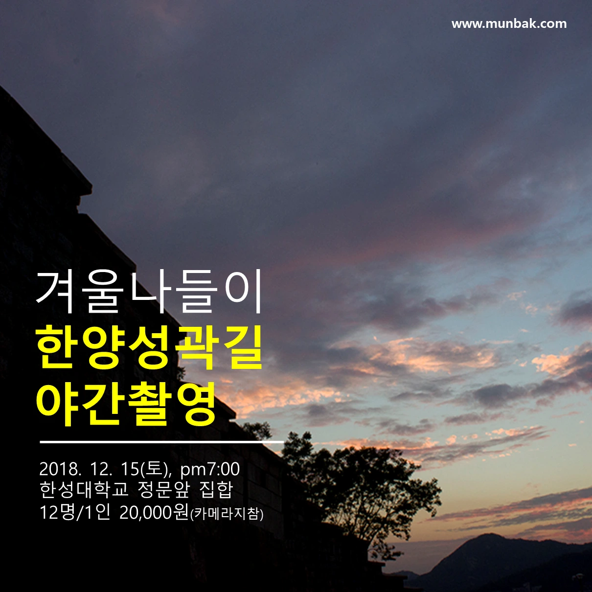 - 진행장소 : 문밖세상ArtSpace('한양성곽길 야간촬영'만 야외진행)