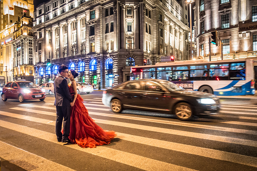 와이탄 거리는 상하이 웨딩사진 명소인 듯했다. 여행하는 동안 밤 시간에는 저렇게 도로 가운데서 오랜 시간 웨딩사진 찍는 커플을 종종 볼 수 있었다. 신기한 건 저렇게 넓은 도로를 점령하고 빵빵거리는 차들 속에서 미안함 없이 너무 당당했다. 더 신기한 건 이런 행동을 보고 제지를 하거나 손가락질하는 사람도 없다는 것이다. 지나가는 차들도 경적만 울릴 뿐 특별히 항의하는 사람도 없었다.