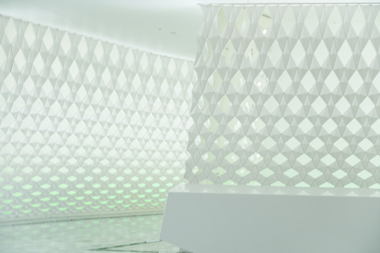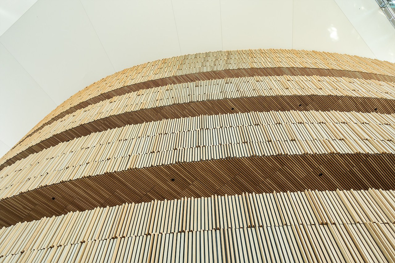 나선 모양으로 외부에서 내부로 올라가는 모든 길을 목재를 사용했다. 차가운 소재의 석재와 알루미늄의 대비를 보여줌으로 상대적으로 더 따뜻하고 안정감 있었다. 다만 아쉬운 점은 이날은 공연이 없었는지, 저 계단을 올라보지 못했다.