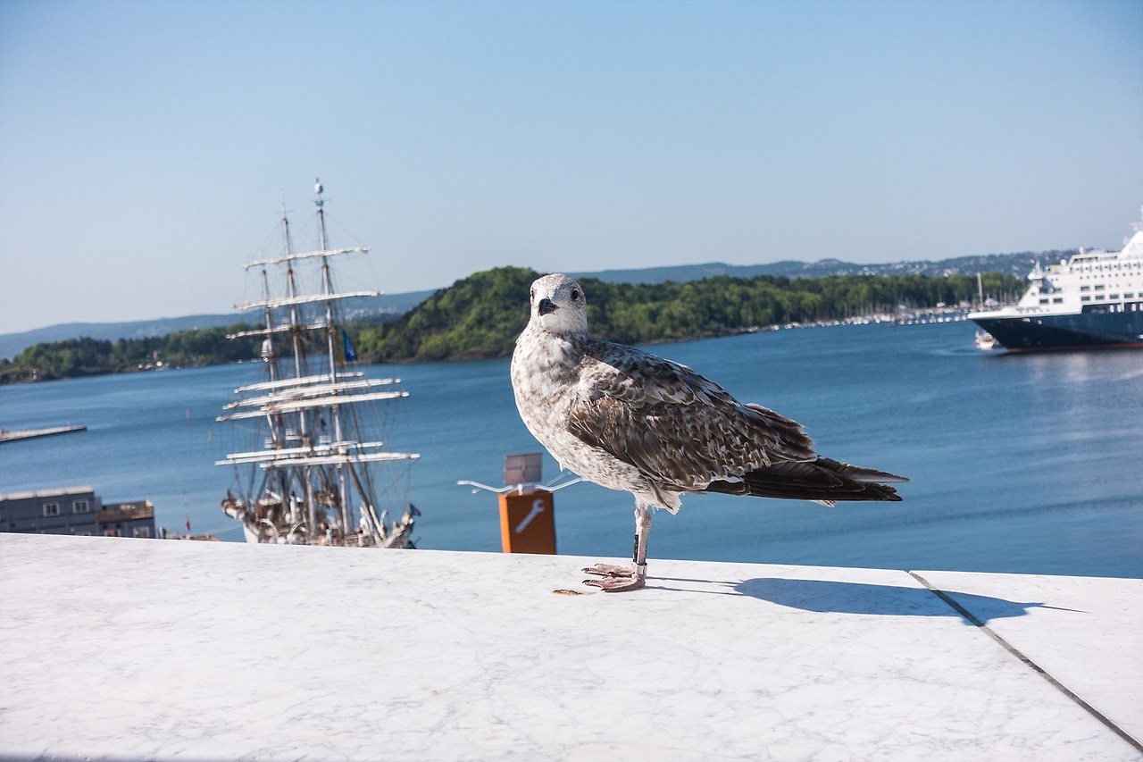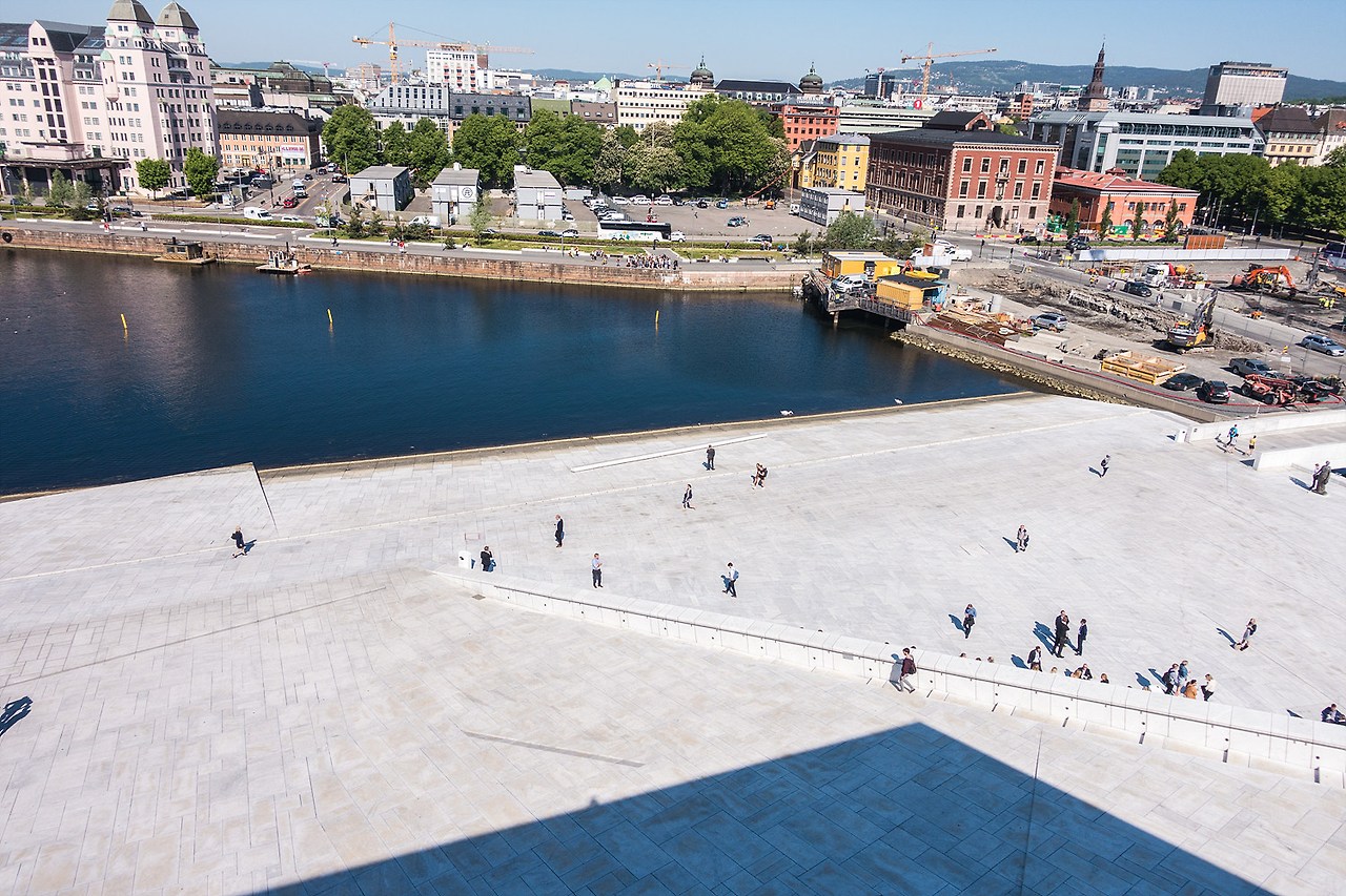 오슬로 오페라하우스에서 오슬로 시내를 한눈에 전망할 수 있다. 고층건물의 위압감이 없다. 산과 숲 나무 건물들이 비슷한 높이로 조화롭게 있다. 이런 것들이 도시를 평화롭게 만드는 비결이 아닐까 싶다. 흐르는 물과 전망만 바라보고 있어도 지루하지 않다.