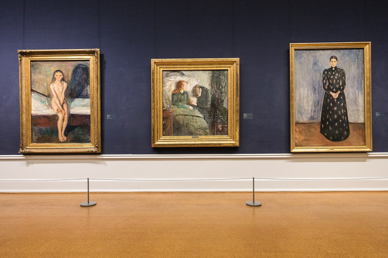 절규외 에도 사춘기, 아픈아이, 여동생 잉게르 작품도 볼 수 있다. 가운데 그림인 <아픈아이>는 그가 다섯살인해에 어머니가 폐결핵으로 세상을 떠났으며 그후 누나 소피에도 그가 14세때 결핵으로 죽었다. 자신이 기억하는 누나의 모습을 그림으로 표현된 것이다. 어린시절의 비극적인 현실이 그의 전반적인 작품세계로 반영되었다. 입센의 작품 <유령> 속 오스왈드처럼 자기도 또 자신의 죽은 가족 의자에 않아 갈구 하게 될것이라고 했다.