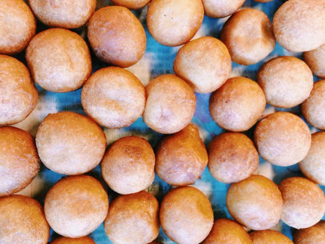 시장에 가면 있는 음식 중 하나. 꽈배기와 형제격정도 되고, 사촌으로는 우리가 잘 하는 링 모양의 도넛이라고 할 수도 있겠다. 찹쌀도넛은 동그란 완전체적인 모양에 유혹스러운 갈색 빛깔을 가졌다. 그리고 더 완성적인 모습은 온몸으로 눈처럼 하얀 설탕 속을 거침없이 구른 후이다.