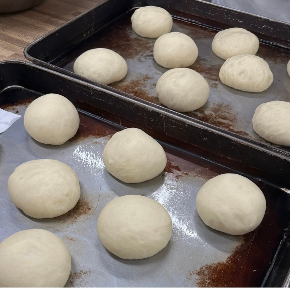 일반적으로 유지로서 버터만이 들어가지만 이곳의 레시피는 특이하게 쇼트닝도 함께 들어간다. 쇼트닝이 들어가면 글루텐 형성을 방해해 더욱 부드러운 식감을 낼 수 있고 지방 성분으로 인해 빵에 풍미가 더해진다. 이러한 재료들로 믹싱기에 넣고 혼합이 되면 정량의 분할을 하고 탄력 있는 글루텐을 형성하기 위해 둥글리기를 시작한다.