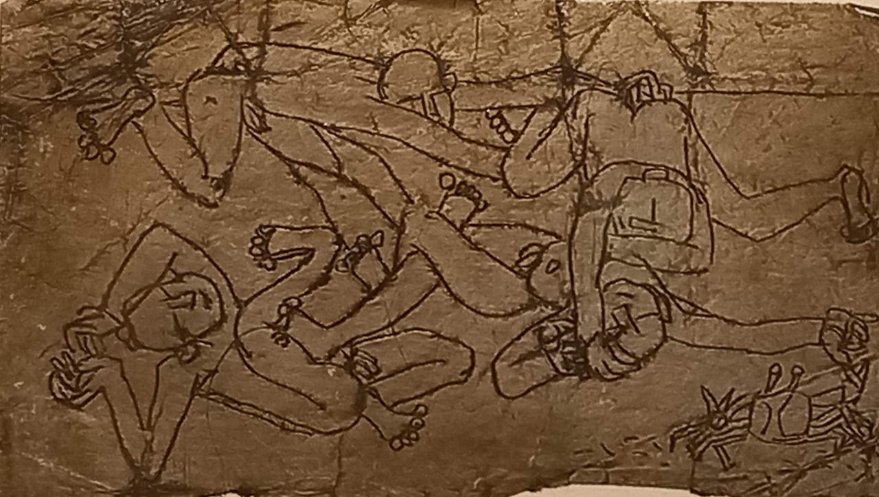 은지화-담뱃갑에 들어있던 은지의 자연스러운 접힘과 날카로운 송곳등으로 음각을 해서 그린 작품