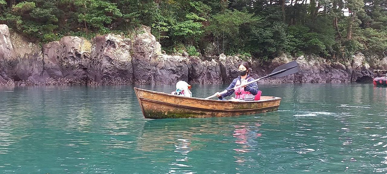 다행히 바다까지 나가서 배를 타는 것이 아니라 넓은 바다로 나가기 전에 한쪽을 적절하게 막아 승선 준비를 할 수 있게 하고, 주의사항을 듣고 기다리다 도착된 조각배에 2명씩 승선하여 계곡 쪽으로 배를 저어 올라갔다가 돌아오는 20분 정도의 코스였다.