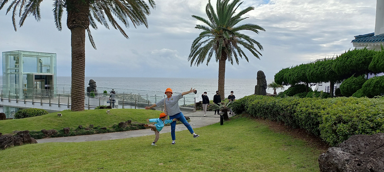 아침에 일어나니 바람이 많이 불고 살짝 비도 섞여 내렸다. 오늘은 쇠소깍 가서 조각배 타고 놀고, 오후에 요트 타고 바다에 나가 주상절리대를 보고 낚시체험을 하고 돌아오는 일정인데 바람이 많이 불어 요트 승선이 취소되지는 않을까 라라도 나도 걱정을 했다.