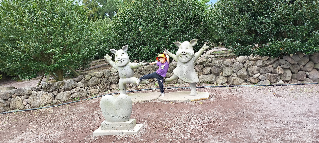 제주도를 생각하면 알 수 있는 여러 가지 재미있는 조형물들이 많았다. 예를 들면 뒷간에 가서 볼일을 볼 때 밑에서 돼지가 그것을 기다리고 있는 모습이나, 아기돼지 삼 형제와 늑대등 모두 돼지와 관련된 것이다. 그리고 곳곳에 사진을 찍도록 멋진 공간들을 연출해 놓은 곳이 많았다. 또한 하늘 광장에는 핑크몰리가 환상적이었다.