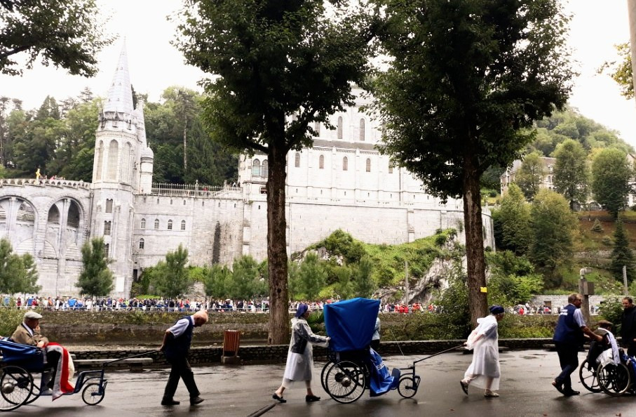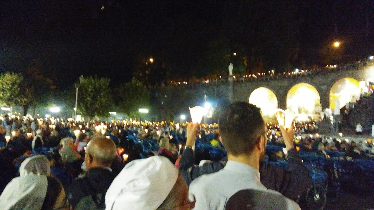 환자들을 태운 휠체어부터 노인, 청 장년, 어린이, 갓난아기를 팔에 안은 부부들까지 행렬의 뒤를 따르며 모두 촛불을 손에 들고 성가대의 묵주기도 선창을 따라 아베마리아를 합창했다. 광장을 가득 메운 긴 행렬의 불빛과 아베마리아를 부르며 뒤따르는 순례자들의 모습은 실로 장대한 광경이고 아름다웠다.