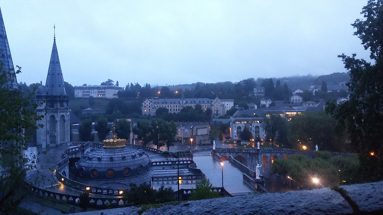 침수하고 나온 남편이 약간 흥분된 모습으로 상기되어 나왔다. 무슨 일이 있냐고 물으니 쑥스러운 듯 미소 띠며, 기도하면서 물에 들어갔는데 눈물이 막 쏟아졌다고 한다. 특별한 경험을 한걸 보니 나도 내일 아침에 꼭 해봐야겠다는 생각을 하며 부러운 마음을 갖고 숙소로 돌아와 쉬다가 저녁 6시에 다시 성지로 갔다. 9시에 있을 야간 묵주기도 행렬에 참여하기 위해서이다.