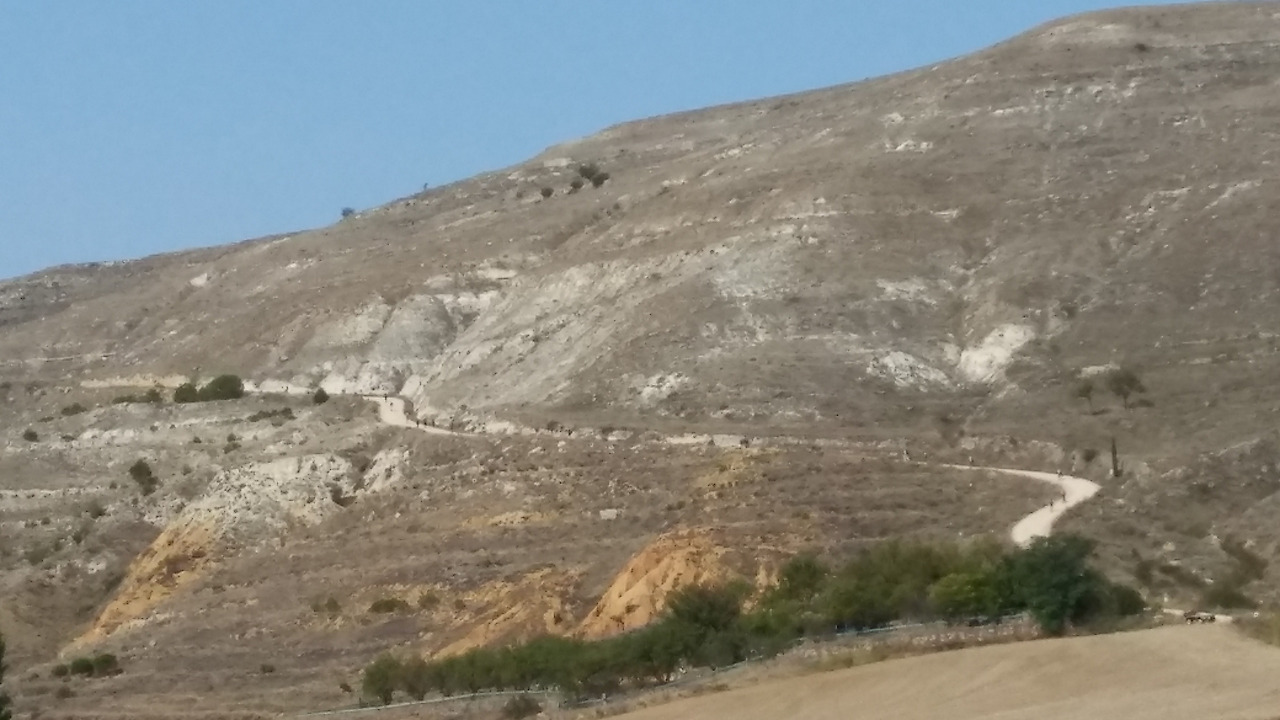 까스트로 헤리츠 마을을 지나니 해발 900미터 높이의 언덕으로 올라가는 경사진 오르막 흙길이다. 나무도 거의 없는 약간 거무스레하게 보이는 언덕은 멀리서부터 우리를 질리게 한다.