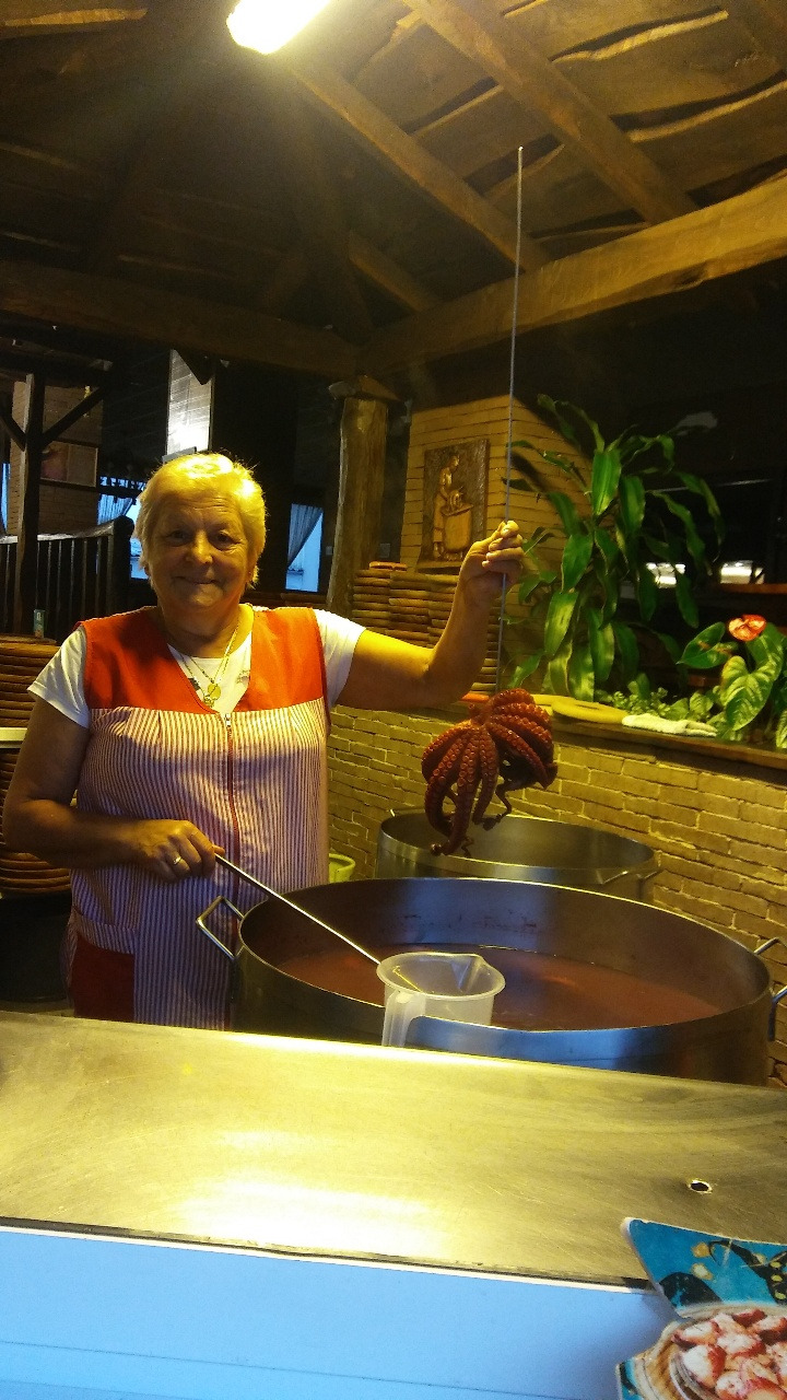 식당을 나오면서 문어를 삶고 있는 할머니에게 사진을 하나 찍어도 되냐고 하니, 삶는 문어를 하나 들어 올리며 포즈를 취해주셨다.