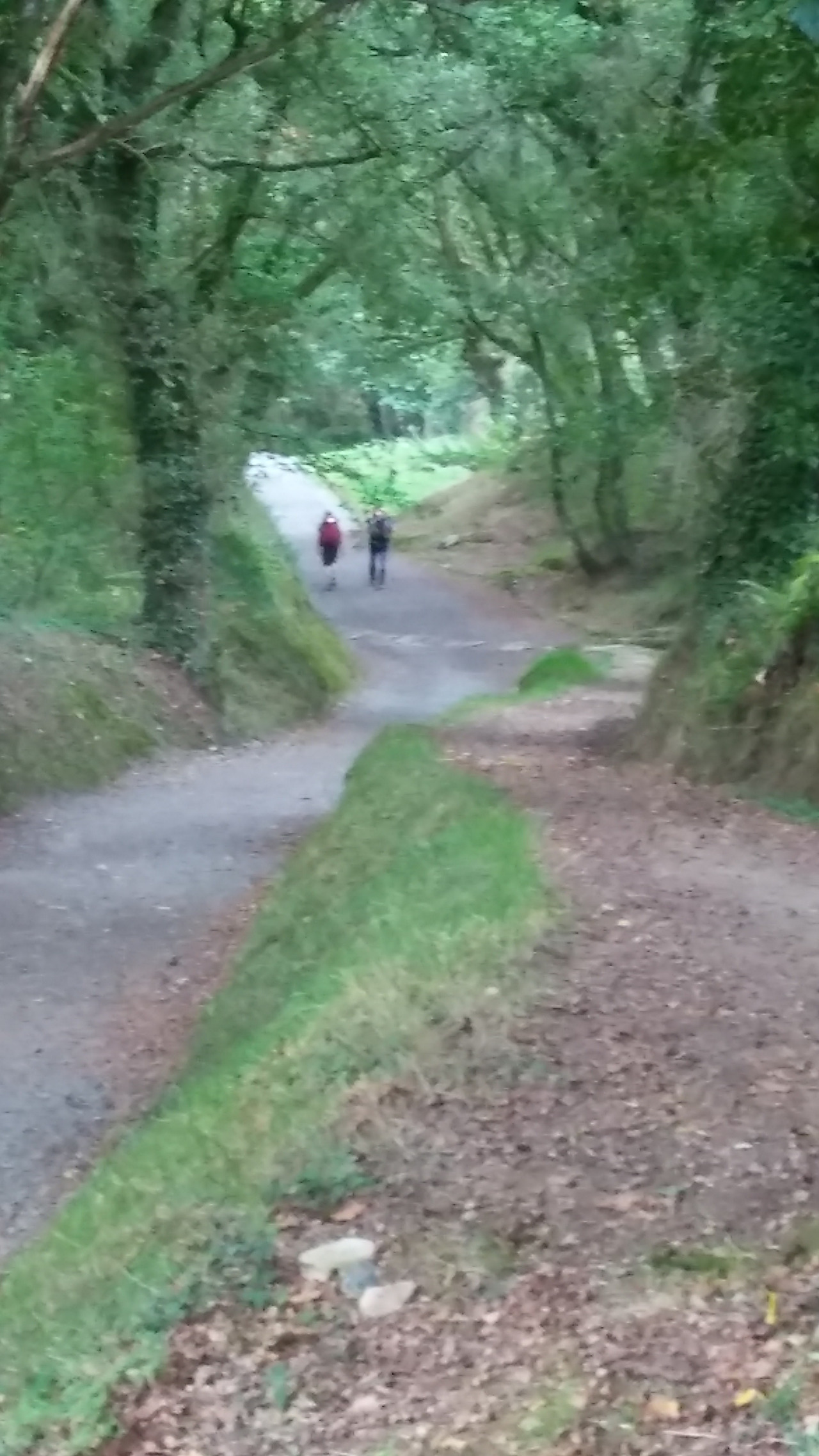 완만하게 이어지는 내리막길의 숲길로 들어섰다. 오래된 소나무와 유칼립투스 나무들이 터널을 이루는 시원한 산길을 계속 걸어 내려갔다. 이끼가 끼여 나무들이 밑에서부터 위까지 모두 초록으로 어우러져 아름다우면서도 조금 으스스한 느낌이 들었다. 모두 초록으로 분한 나무들 사이를 걷는 것이 영화 속 한 장면 같다.