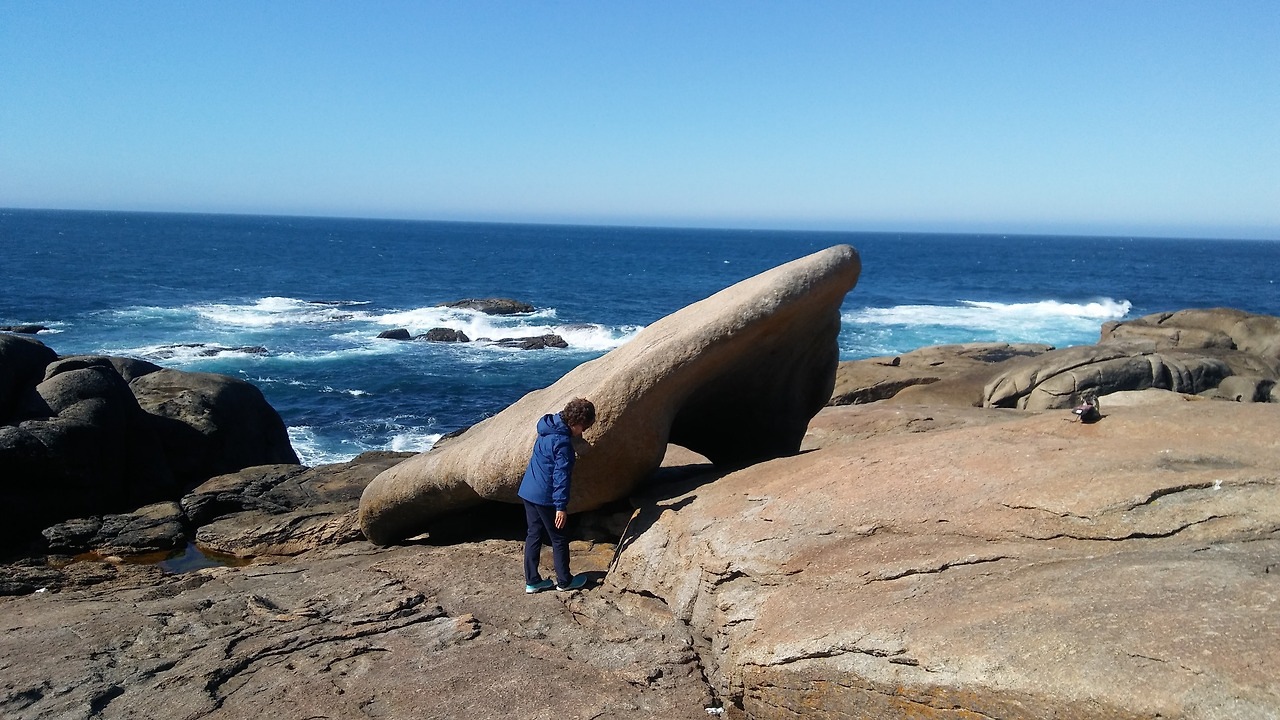 잠시 묵상하고 나오니 근처에 돌 두 개로 세워진 기념비가 보인다. 2002년 11월에 대형 유조선이 돌풍에 파손되면서 63,000톤의 검은 기름이 퍼져서 스페인과 포르투갈, 프랑스의 해안이 온통 기름 뻘로 변했을 때 여기 무시아도 크나큰 고초를 겪었다고 한다. 그 당시를 기념하기 위해 마주 보는 돌 두 개로 상처를 표현한 기념비였다.