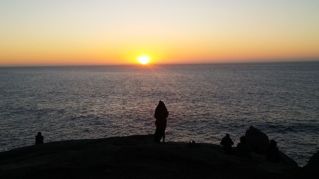 많은 사람들이 일몰을 보기 위해 자리를 잡고 서있거나 앉아있다. 우리도 한쪽에 자리를 잡고 앉아 대서양을 어제처럼 붉게 물들이며 수평선 너머로 사라지는 붉은 해를 보면서 잔잔한 마음으로 오랫동안 앉아 있다가 함께 일몰을 보기 위해 올라온 미스 최와 맛집 탐방을 갔다.