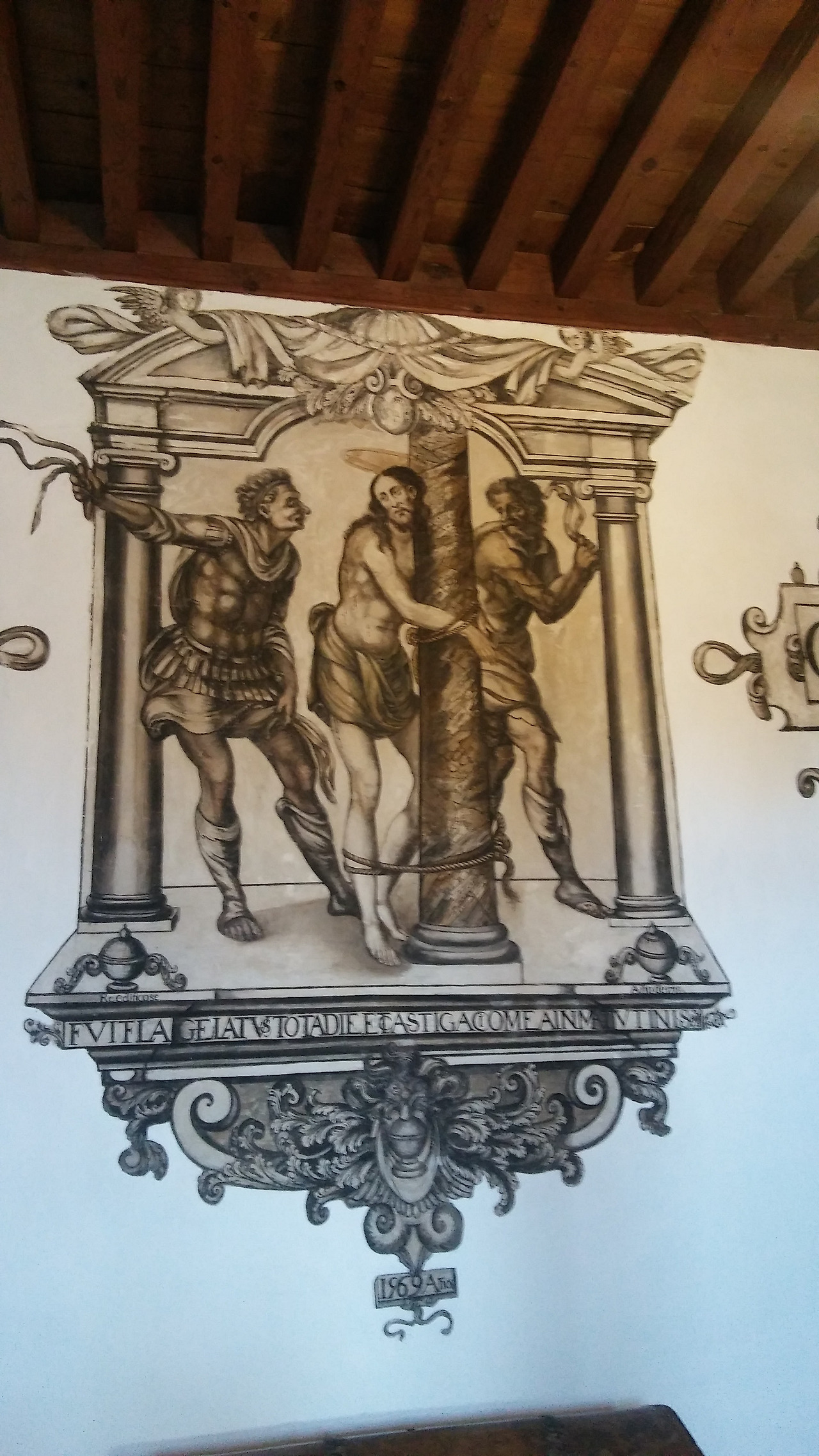 제1실에서는 기둥에 묶여 채찍질당한 예수 그리스도를 그린 프레스코 벽화가 있었다. 어느 날 성녀는 기도 중 환시로 예수님의 모습을 본 다음 이곳에 그 모습을 그려주도록 부탁했다고 한다. 성녀는 이렇게 신비적인 그리스도 체험을 통해 수도생활의 쇄신을 시작했다고 한다.