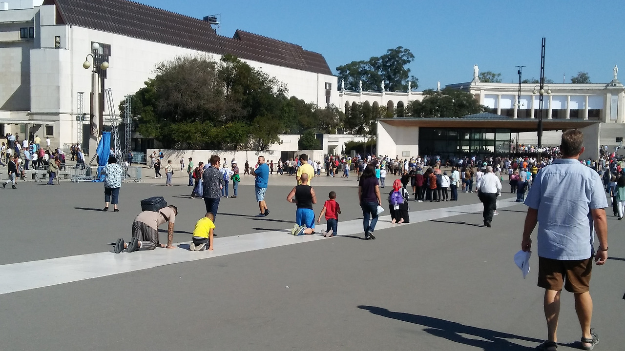 무릎으로 기어가면서 묵주기도를 하거나 자신의 죄를 회개하면서 발현 성당까지 가는 사람들이 많이 보인다. 순간 울컥하는 마음이었지만 나에게는 무릎으로 저 긴 길을 기어갈 신심도 욕심도 부족했다. 아직 숙소도 정하지 못해 등에 메고 다니는 배낭을 추스르며 광장을 가로질러 수도회 알베르게를 찾아갔다.