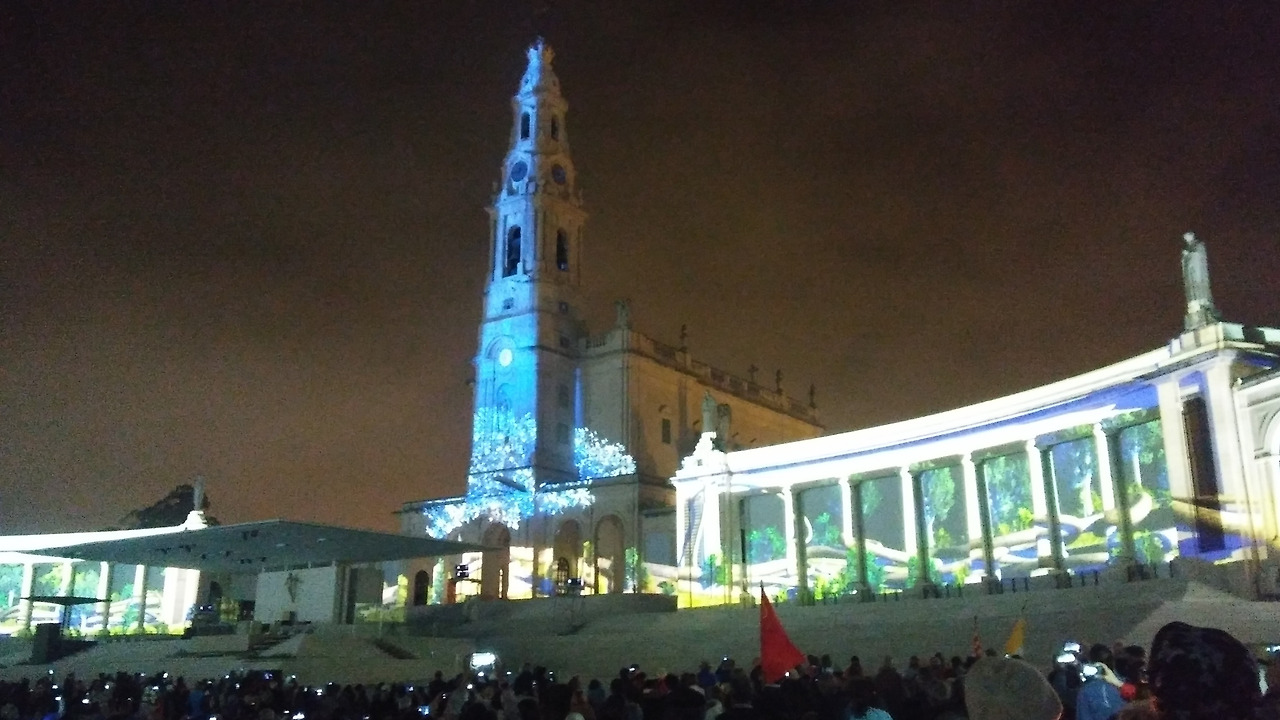 파티마 성모 발현 기념일에 우리가 참석할 수 있다는 것이 꿈같고 표현할 수 없이 감사하고 기뻤다. 미사가 모두 끝나고 성가대의 아름다운 합창을 들으며 여운이 남아 광장에 남아 있다가 숙소로 돌아가려는데 특별한 순서가 시작되었다. 어쩐지 다른 사람들도 12시가 넘어간 시간에 미사가 끝났는데도 일어나지 않고 있어 이상했었다.