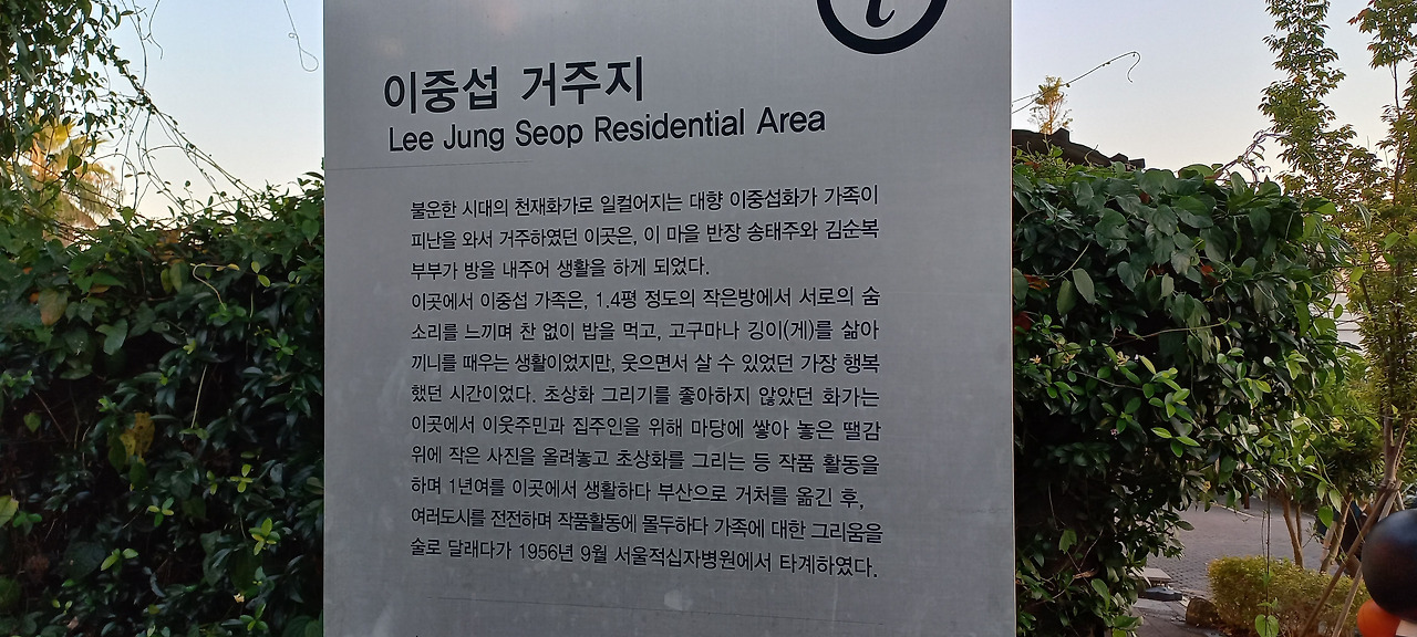 '화가 이중섭의 한국전쟁 중 잠시 거주했던 거주지에 대한 알림 표지'