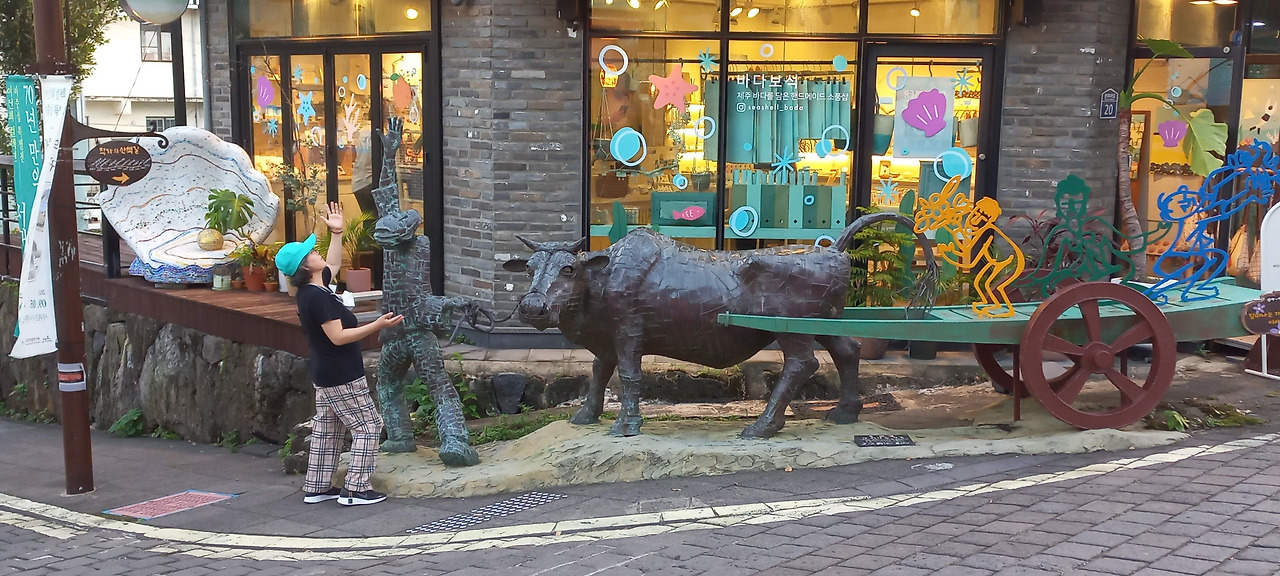 '이중섭 거리'에는 아기자기한 기념품점들이 많이 있었고 길 한쪽 벽으로는 이중섭의 그림이 걸려있었다.