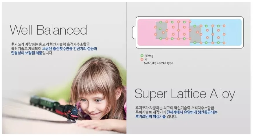 후지쯔는 충전지 중에서도 특별한 기술을 적용해 수명을 압도적으로 늘린 제품이다.