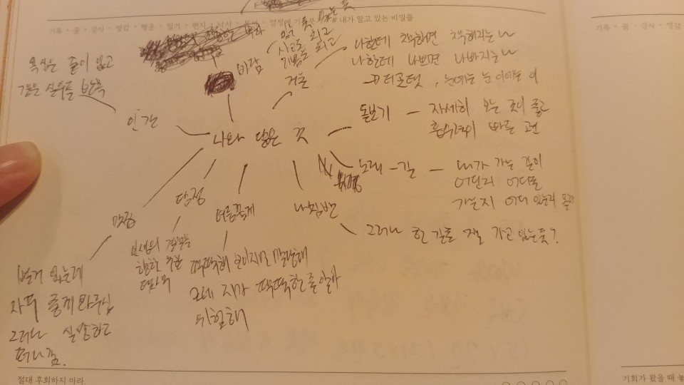 정기 모임 중에 마인드맵을 그리며 나 자신을 찾는 시간을 보냈다.