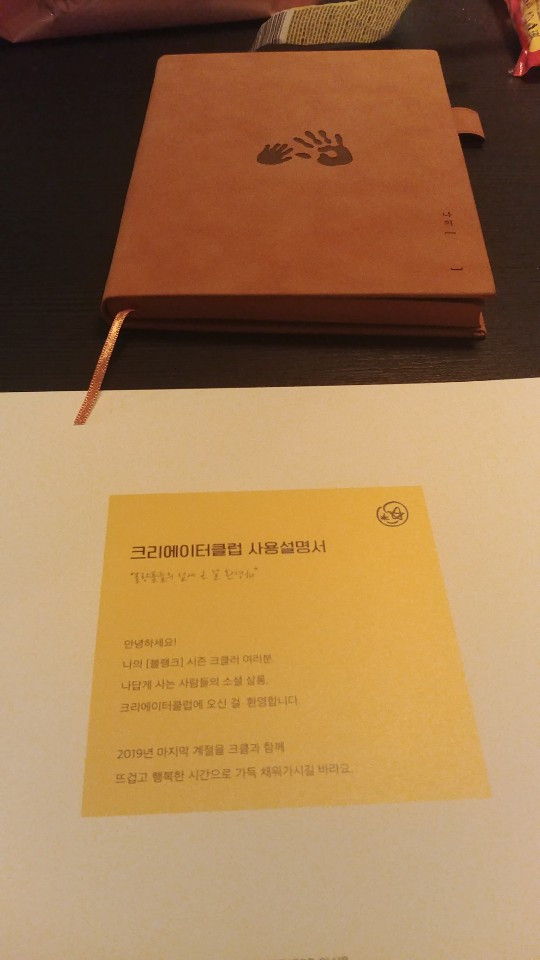 열정에 기름붓기 시즌 다이어리는 크리에이터 클럽 모임의 필수품이다. 특히 쓰기 팀에 선 꼭 필요하다. 모임 중에 글을 쓰는 활동이 많고, 모임과 모임 사이의 2주라는 기간 동안에도 다양한 쓸거리들이 생기는데 이걸 다 다른 노트에 적어두었더니 나중에 내가 쓴 글들을 찾기가 어려웠다. 그래서 다이어리를 꼭 지참하고 다니며 3개월 동안 쓰는 글들을 한 곳에 모아두는 게 좋다!