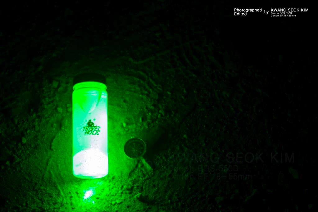 여행에미치다 보틀 위로 '플레이아데스 성단'이 떠오르고 있다.