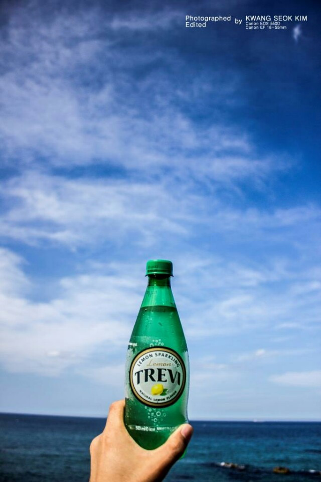 구도는 좋은데 사진이 삐뚫어졌다. 바다를 제대로 만들면 음료가 삐뚫어진다.