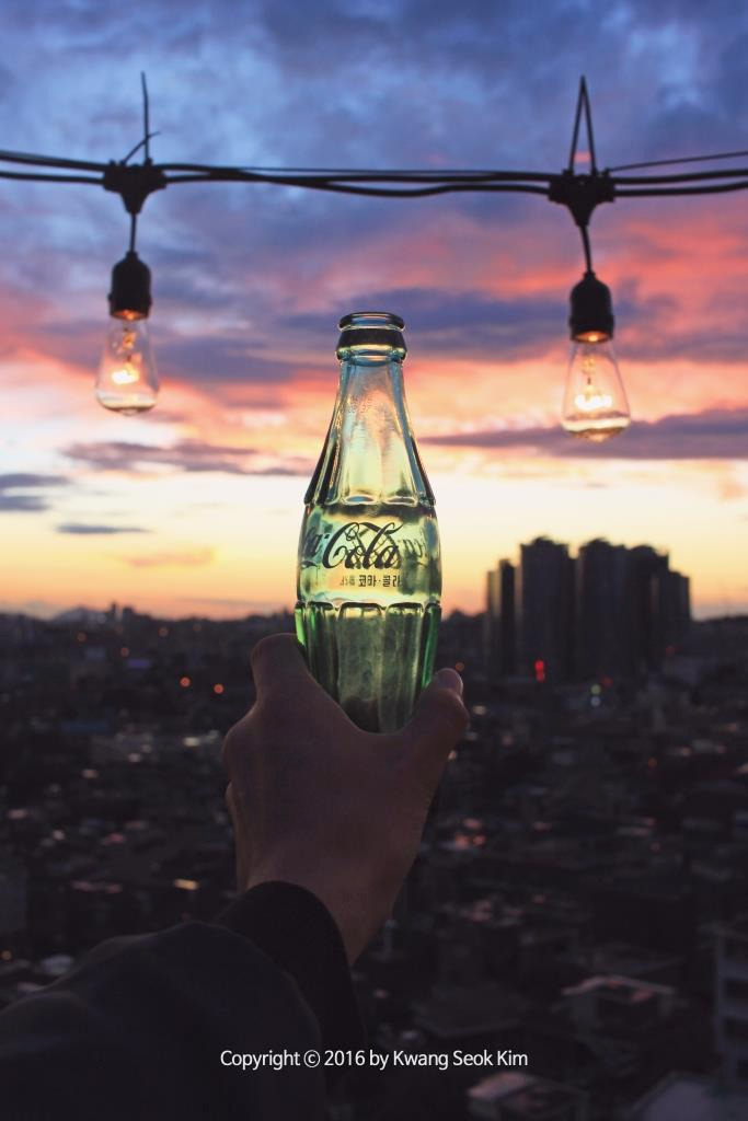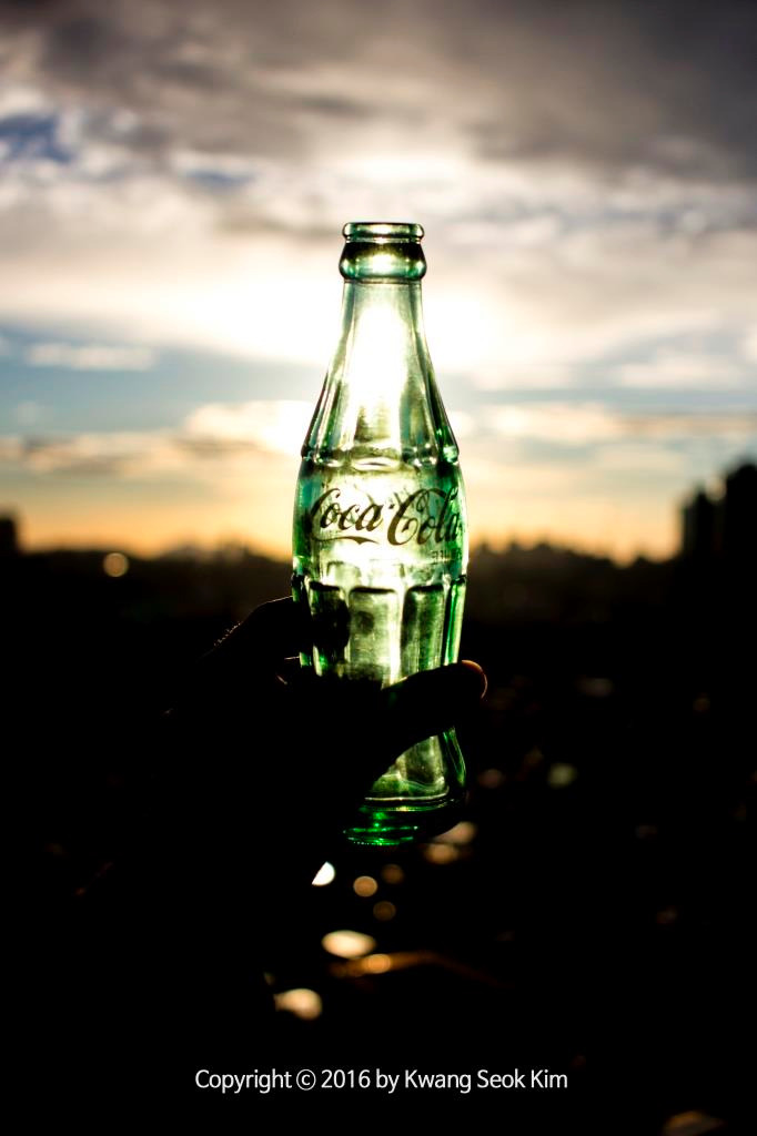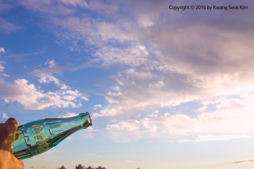 눈치를 버틴 보람이 있었다. 비가 그치고 넓은 하늘이 열렸다. 태양과 구름도 적정한 자리에서 나를 돕고 있었다. 콜라를 들고 그동안 연습했던 다양한 구도를 시도했다. 구도를 시도하다보니 의도한 느낌이 살지 않았다. 그냥 '콜라사진'이었다. 구도 욕심을 버리고 빛, 구름, 소매, 손모양 등 세심한 것까지 하나 둘 잡아가며 다시 찍었다.
