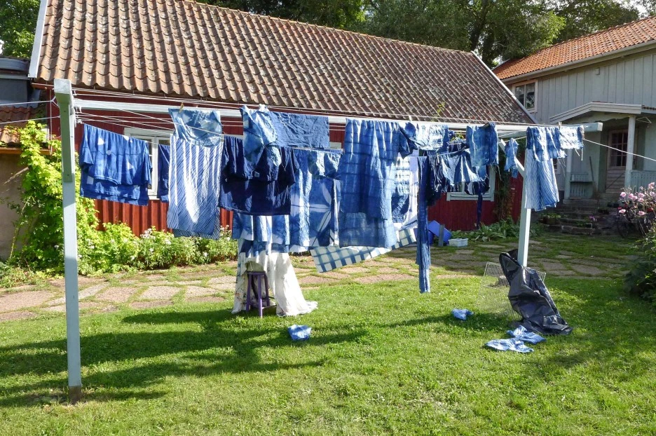 스웨덴은 이제 가을이 가고 겨울이 왔다. 흐린 날씨가 계속되다가 주말에 반짝 해가 날 때 염색한 천을 밖에서 말리고 사진도 찍는다.