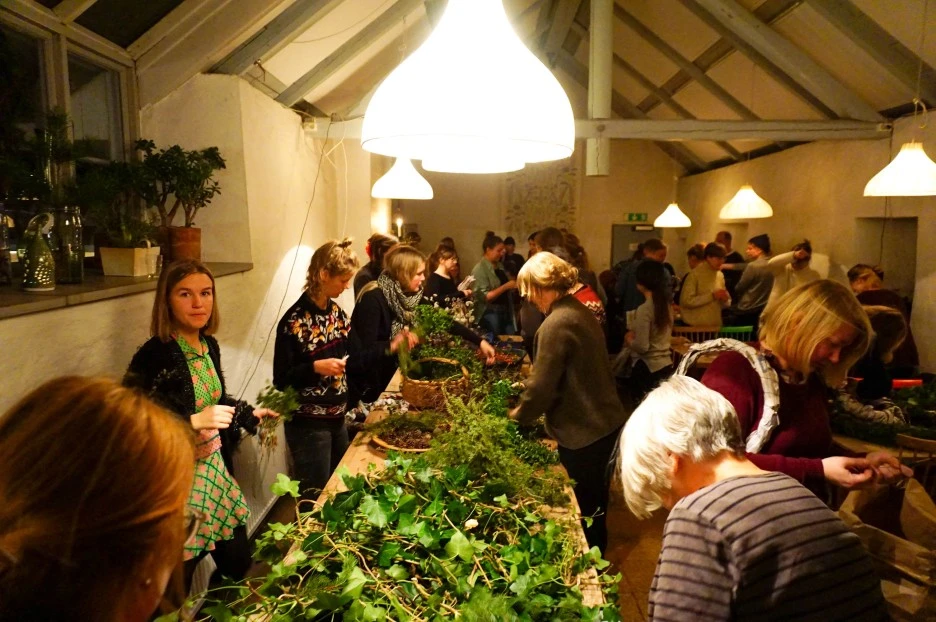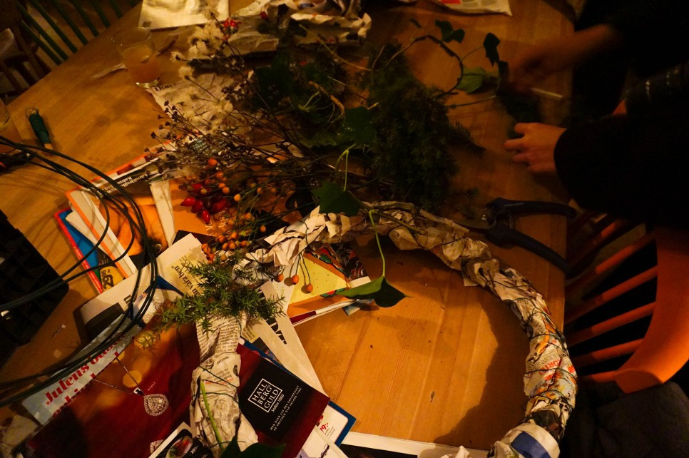 크리스마스가 성큼 가까워진 12월 중순 어느 월요일 저녁, 가드닝 학과의 플로리스트 학생 두 명과 리스 만들기가 진행되었다.
