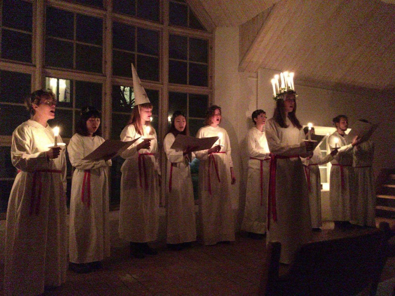카펠라고든에는 12월 13일 루시아 데이 저녁 합창단이 노래를 부르는 전통이 있다. 학생들이 지원해서 같이 연습하고 선보이는 일종의 작은 발표회다. 다 같이 뭔가 목표를 세워하는 걸 워낙 좋아하고 고등학교 때 잠깐 합창반도 했던 나는 바로 손을 들고 참가하게 되었다.
