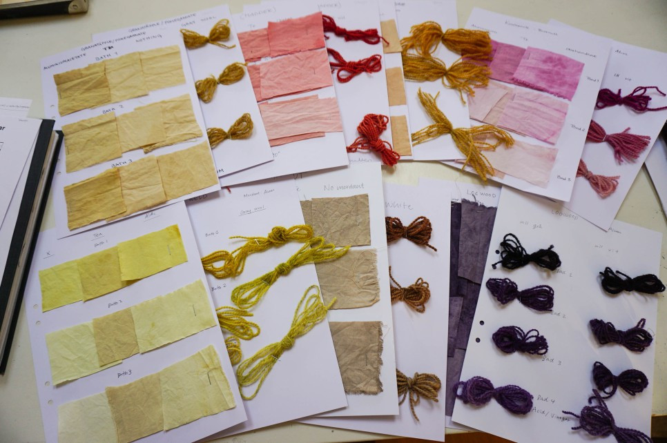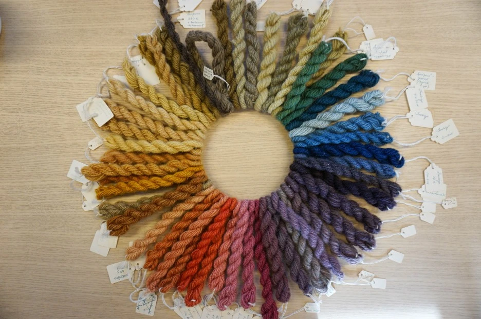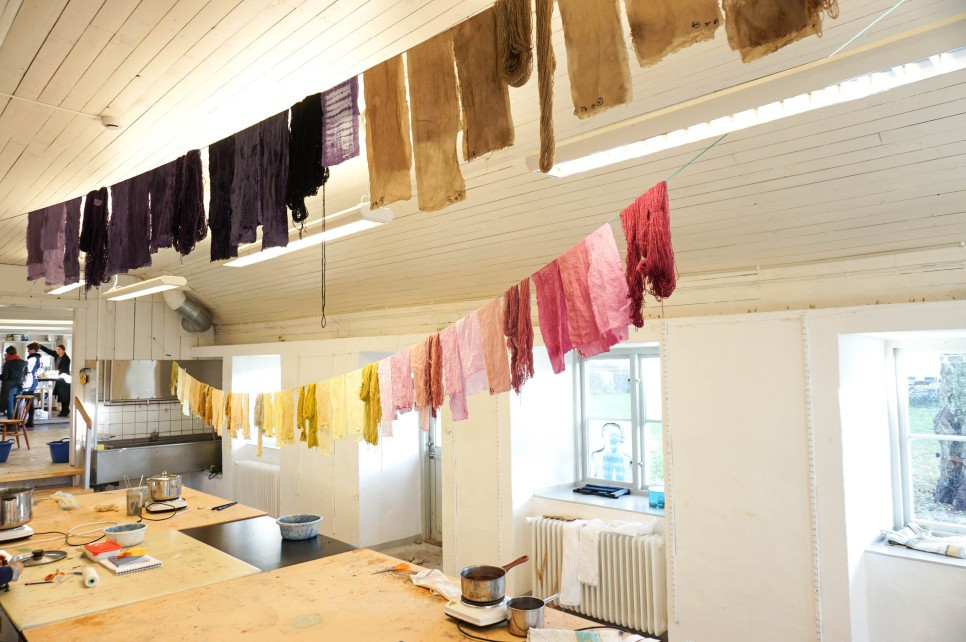 천연염색 수업시간이다. 에린이 무지개 색깔 동그란 실 샘플을 보여줬다. 생물학자인 에린은 재작년 카펠라고든 텍스타일을 졸업했다. 학생 때 연구 주제였던 천연염색을 우리에게 가르쳐주기 위해 특별 수업을 진행했다.