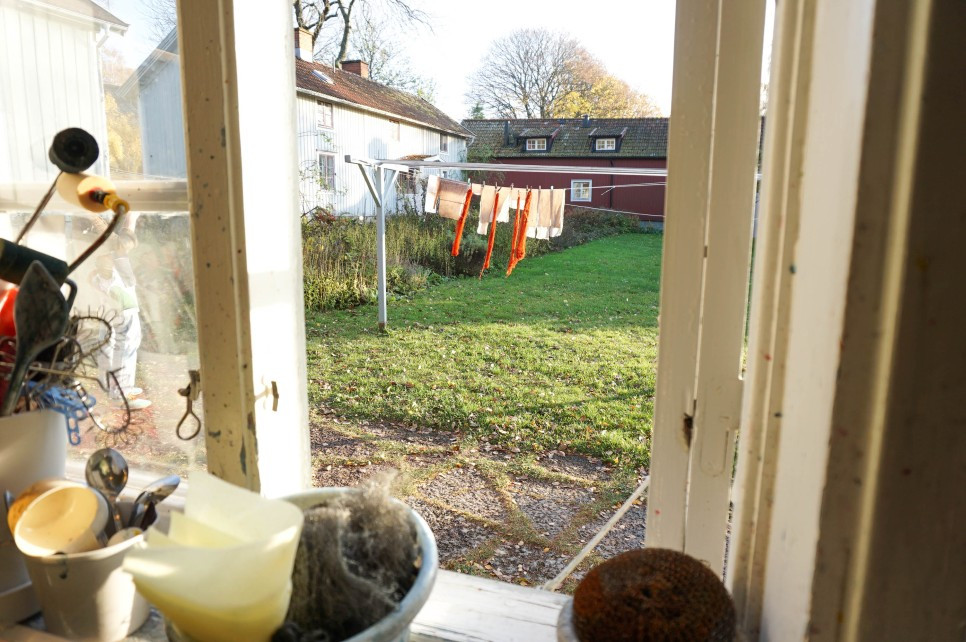 예전 스웨덴 가정에는 이런 실패가 하나씩 꼭 있었다고 한다. 직접 실을 염색해서 걸어놓은 일종의 염색 샘플들인데 보기만 해도 예쁘다. 천연염색이라 하면 대개 감귤색, 흙색과 같은 재미없는 색만 있다고 생각하기 쉽다. 이번 염색을 통해 그건 큰 오해라는 걸 알게 되었다.