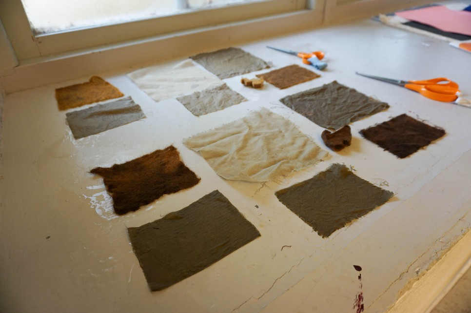 순면, 울, 펠트, 리넨, 합성 면 다양한 종류를 염색해봤다. 예쁜 갈색이 나왔다. 앞으로는 가을에 혹시 호두나무 곁을 지나게 되면 떨어진 껍질 중 깨끗한 게 있나 잘 살펴보게 될 것 같다.