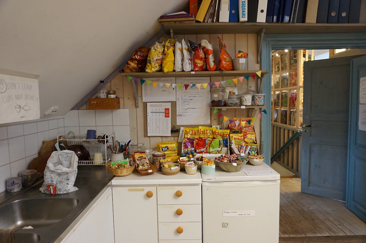 카펠라고든 텍스타일 학과에는 구멍가게가 있다. 우리 워크숍 한편을 작은 과자 편의점처럼 꾸며놓은 곳이다. 욀란드 섬에서도 외진 곳에 있는 카펠라고든은 육지로 나가려면 버스를 갈아타고 한 시간이 걸린다. 섬 내 가까운 슈퍼마켓에 식재료를 사러 갈래도 30분이 족히 걸린다. 작업하다 당이 떨어질 때 달려가 초코바 하나 사 올 편의점이 없는 것이다.