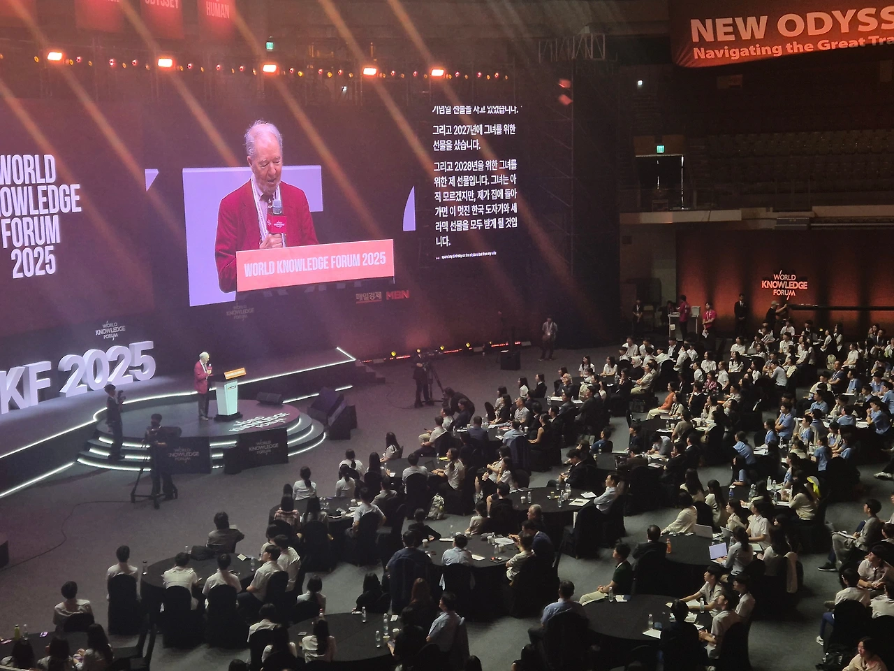 서울에서 열린 세계지식포럼 무대에 오른 그는 자주색 슈트를 입고 있었다. 1937년생으로 이제 아흔을 바라보는 나이임에도, 세월의 무게를 당당히 이겨낸 듯 정정해 보였다. 무엇보다 눈길을 끈 것은, 90세를 앞둔 고령에도 10시간이 넘는 비행을 감수하며 한국까지 와서 목소리를 낸 이유였다. 그것은 자신이 평생 연구해 온 지식과 통찰을 직접 전하고 인류에게 경고를 남기려는 학자의 사명감, 그리고 지금 이 순간 행동을 촉구해야 한다는 절박함 때문이었을 것이다. 한국이라는 무대 역시 빠른 변화 속에서 인류 공통의 과제를 압축적으로 보여주는 장소였기에, 그의 메시지는 더욱 특별한 울림으로 퍼지기 시작했다.