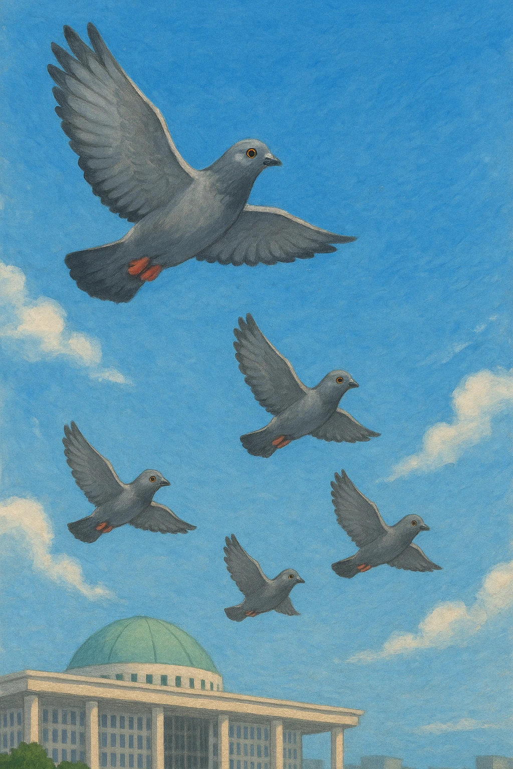 네 마리 비둘기는 동시에 하늘을 올려다봤다.